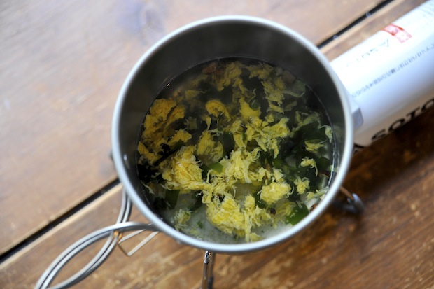 まずはお湯を沸かして普通にたまごスープを作ります。