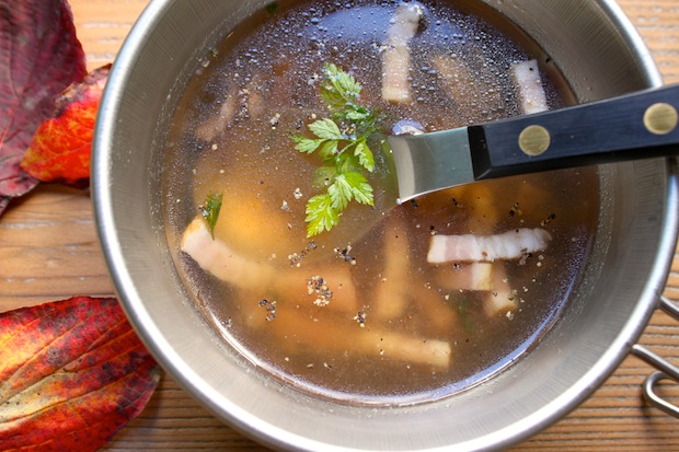見た目は「?」ですが、味は太鼓判。スープだけでなくリゾットなどにもよいです。真冬の寒いときには水の半量を牛乳に変えて、とろみをつけてみてください。きっと「ほっ」と心和むと思います。