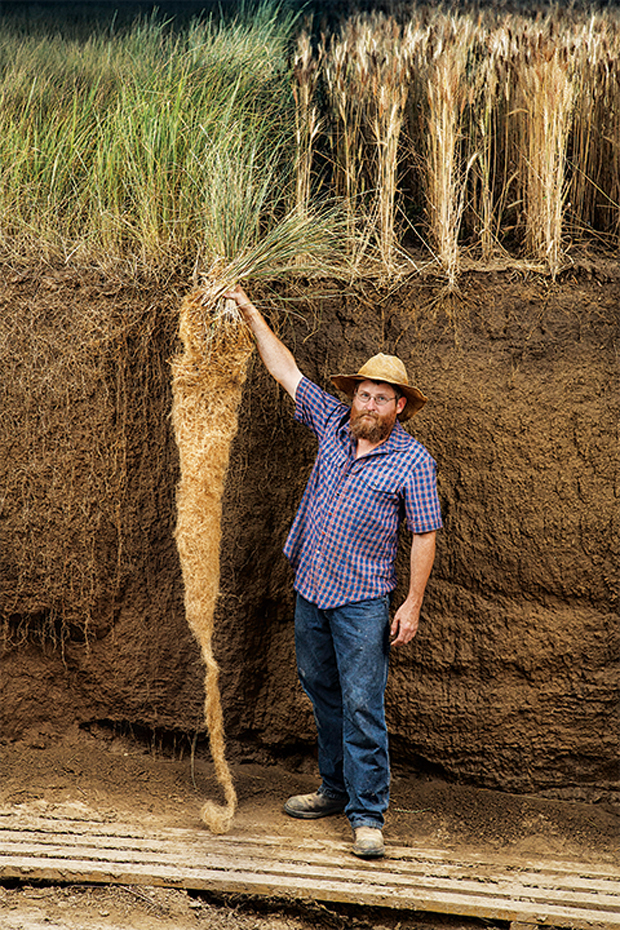 わたしたちが普段口にしている小麦は、一年生植物といって、毎年土を耕して新しく種を蒔かなければならない。一年というタームの早い栽培は、土壌を痩せさせ表土を失わせることにつながる。根が浅い一年生植物に比べ、深く広く根ざす多年生植物は土壌の保水力を高め豊かにする力がある。長い根があることで、雑草が生える隙を与えず農薬も必要ないという、なんともたくましい植物なのだ。