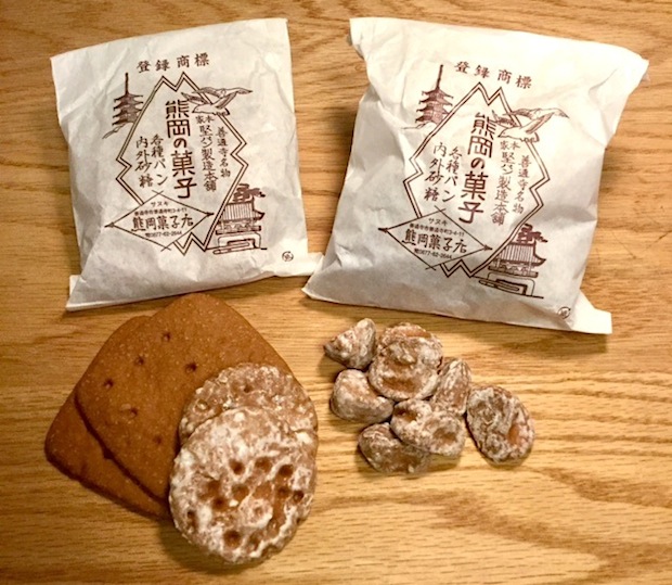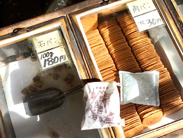 聞けば、創業当時善通寺に旧陸軍11師団ができたことがきっかけで、「日持ちして腹持ちがよいものを」という軍の要望に応えて熊岡菓子店の初代が作り上げたのが携行食「堅パン」だったのだそうです。その後、次第に善通寺の参詣者やお遍路さんの間で人気になり、今では名物に。