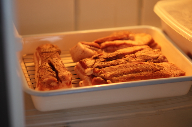 それでは、なんちゃってベーコンを作るために、正式なベーコン作りの手順をおさらいしましょう。