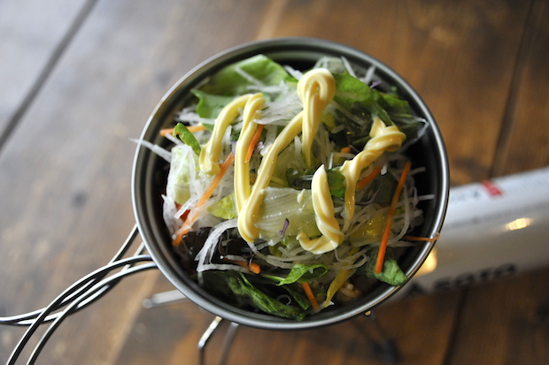ソロでの軽いハイクは、朝イチ電車へ乗る前にコンビニで昼ごはん買う人も多いと思うんだけど、温かい食事を食べたくない?ってことで「コンビニ食材を利用した山ごはんレシピを紹介していこう」というのがこの連載。