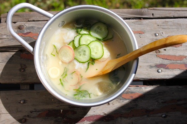 夏は熱を帯びたカラダをほどよく冷ますのが重要(でも冷やし過ぎには注意!)。もっと簡単な食べ方なら、キュウリとみそを食べて水をたっぷり飲めば、体内で冷や汁になりますね(笑)。アウトドアで遊んだあとには、ぜひみそ積極的にを摂ってみてください。