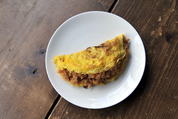7品目はオムライス。おにぎり・卵・ケチャップという材料は想像がつくが、ここに意外なある缶詰めが登場。また卵を扱いやすくする調理方法も見どころだ。
