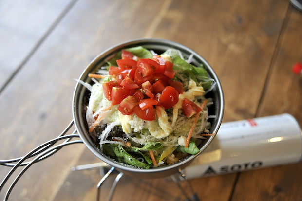 「調味料を増やし、手間をかければよりおいしくなるのは分かっています。が、荷物や時間に制限があるのが山ごはん。ジャンクでもいいから、なるべく軽くて、常温保存が可能な材料を選び、そして5分前後で作れることを心がけてレシピを考えます。