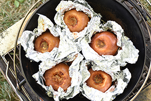 せっかくだから食後のスイーツも作っちゃいましょう! ダッチオーブンを使えば、案外簡単にできる焼きりんごはキャンプスイーツの定番。しかもこの時期はりんごがたくさん流通する季節です。スーパーや道の駅でゲットしてから入場しましょう。余ったらご近所のサイトの人におすそ分けして交流を図るのもグッド。