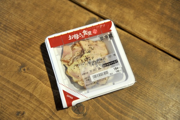 それからファミリーマートで力を入れている、お惣菜などをラインアップする「お母さん食堂」シリーズから「桜のチップで燻したスモークチキン」を使います。