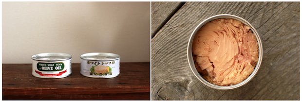 材料ですが、ツナ缶はお気に入りの「由比缶詰所」のもの(もちろん入手しやすいもので代用可)。ツナは油漬けになっているから、山での調理では特にこの油も使うわけだけど、これ、油までもおいしいんです。マグロの身をほぐさずに詰めたタイプだとより魚肉感をより楽しめておすすめ。