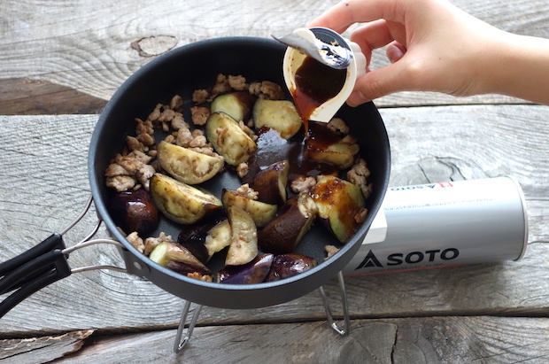 2回目の山つまみは、本格的な味を手軽に作れるイチオシレシピ「四川風! 麻婆なす」のご紹介。四川料理は花椒(※)や唐辛子などの香辛料を使う辛みのある料理ですが、山でその辛さにしびれて、片手にお酒なんて最高……!