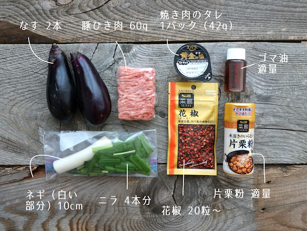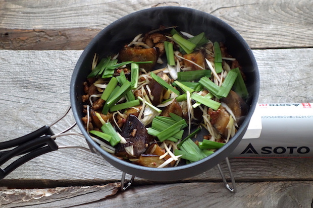 なすは匂いもなく、常温で持ち運びやすく、そして軽い。山ごはんにぴったりの食材ですね。