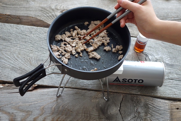 「山にお肉を持って行くの?」と思う方もおられるかもしれません。でも今回のレシピ、お肉をシーチキンやコンビーフでアレンジしてもOKですが、ぜひお肉で作ってみてください!