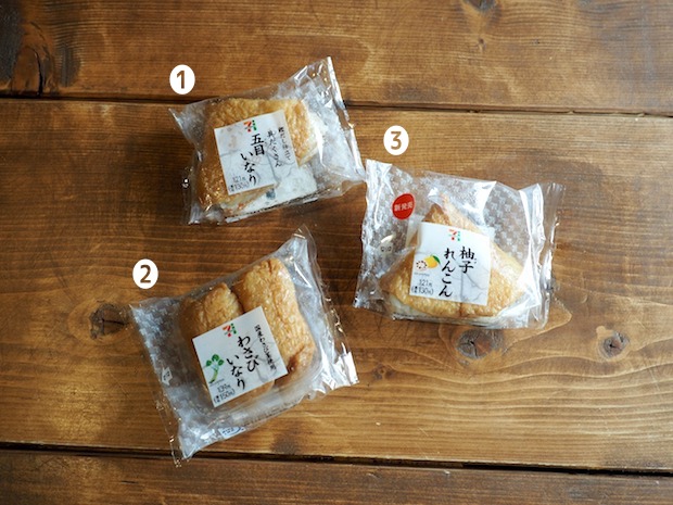 でも甘みが強いからどう使うのかちょっとだけセンスがいる。そこで今回はこの3種にそれぞれ合ったコンビネーションを教えるので、みなさんもほかのお稲荷さん系おにぎりを見つけても挑戦してくれたらうれしいな。