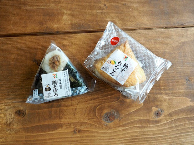 さて! 最後は❸柚子れんこんと鶏そぼろにぎりのコンビ。
