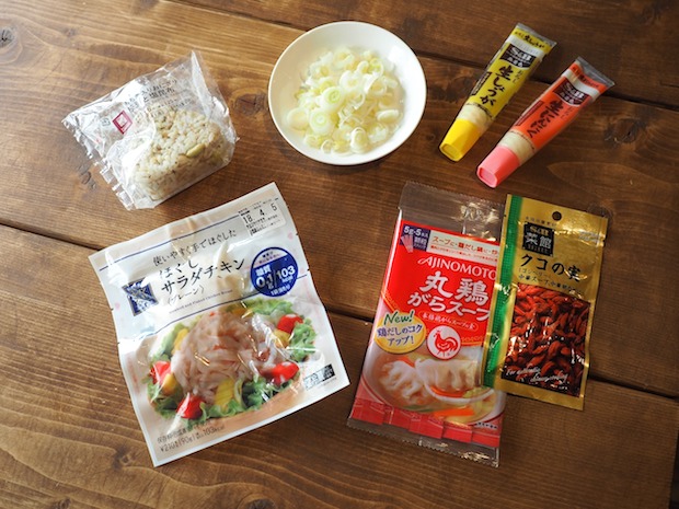 ネギは近所のコンビニで刻みネギが売り切れていたので自分で切ったものですがご勘弁を。まぁ、ネギとかクコの実とかはなけりゃないでなんとかなります。