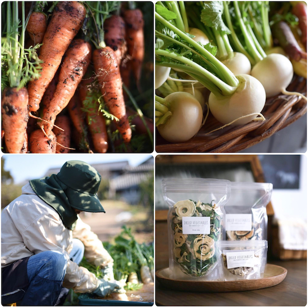 ヤドカリカンパニーの乾燥野菜は、自社農園「ヒナゴファーム」のそばを流れる大野川の豊かな水に恵まれた土壌で育てられた季節の野菜がベース。