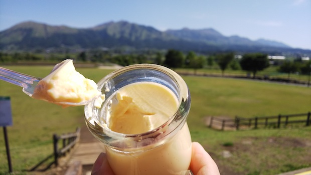 でもこの「南阿蘇こだわりプリン」はちがうんです。食べた瞬間にちがうってわかっちゃったんです。もちろん好みもあります。でも私にはドンピシャの味だったのです。阿蘇小国の低温殺菌ジャージー牛乳を使っているとのことで、コクがあってまろやか、そこに卵の味がドーンってやってくるんですよねー。衝撃でした。