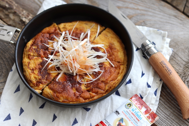 山好き料理家カノウヒナタの「山つまみ12ヶ月」 第8回 切り干しと桜えびのオムレツ(ビールを添えて!)