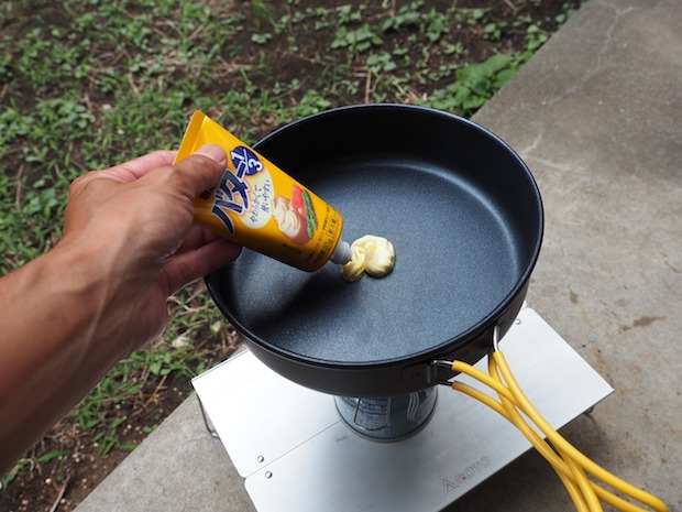 さて、調理ですがまずはフライパンにバターを出して……。