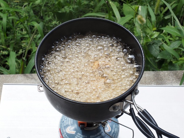 浸る程度に水を入れて沸騰させましょう。