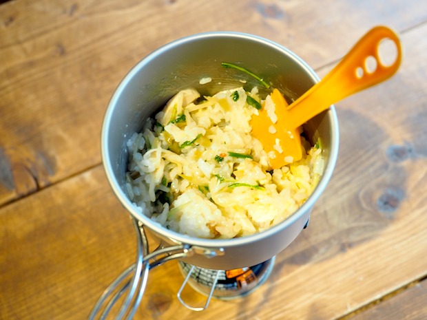 こんなふうにおにぎりと惣菜を混ぜるだけで山ごはんを作る場合、コンビニの陳列棚の前でふたつを混ぜた味をよーく想像してみるといいです。その際、イタリアンと中華といったジャンルがかけ離れたものを混ぜたりせず、なるべく似た味付けのものを選ぶことがポイント。ぜひみなさんもオリジナルの“ドッキングレシピ”、チャレンジしてみてください。