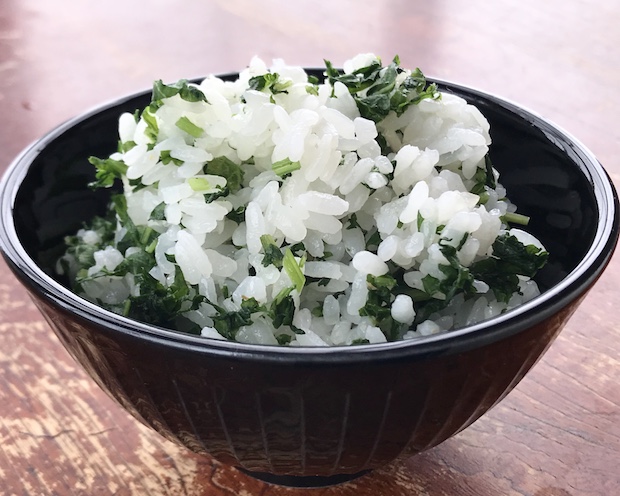 翌朝、浸かったものを引き上げ、流水で洗い、絞って水気を切り、細かく刻んで炊きたてのご飯に混ぜ込んでみた。カラシナの菜飯である。ひと口食べて思わず叫んだ。