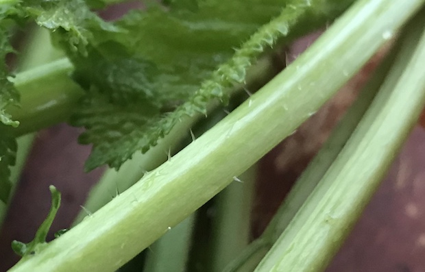 若いものと育ったものを食べ比べてみたが、ある程度大きい株のほうが漬けたときに味が出る。育った株の茎には棘があるので収穫時には注意したい。この棘は塩漬けにしたり火を通すと気にならなくなる。