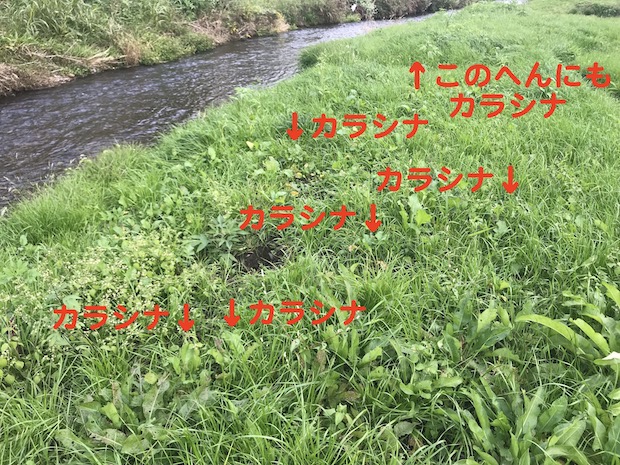 ちょうど、家の近所の河川敷では、カラシナの秋の株が伸びているはずだ。さっそく収穫に出かけた。