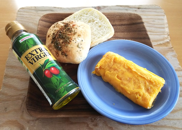 フォカッチャ、玉子焼き、オリーブオイル適量