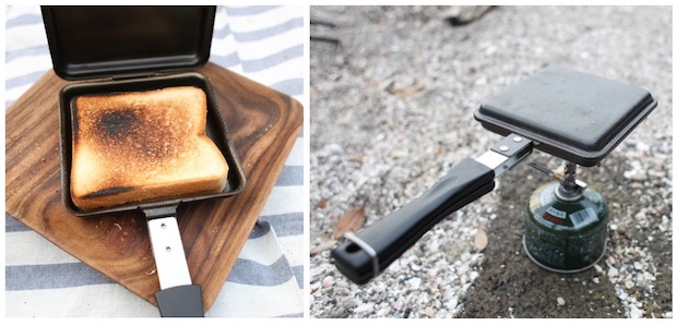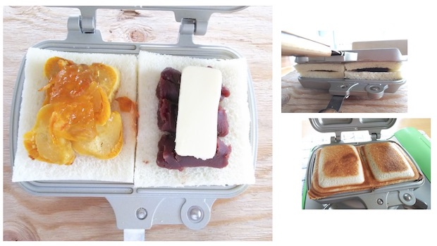 ふたついっぺんにつくれる、スノーピークの特性を生かして、スイーツ系のホットサンド2選をつくりました。焼き芋オレンジサンドとあんバターサンド! キャンプのときにつくる焼き芋っていつも食べきれなくて残るんですよね。それをオレンジマーマレードでさっぱりした味わいに。あんバターは最近定番になってきたコッペパンメニューを再現です。で、結果は、焼き芋オレンジのほうが少しおいしかったかなぁ。