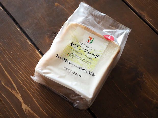 セブンイレブンでは6枚切りの食パンを3枚で売っております。これがまたちょうどいい!! ……かと思いましたがひとりじゃ多いかも(笑)。ふたりでもいいくらいかもしれない。