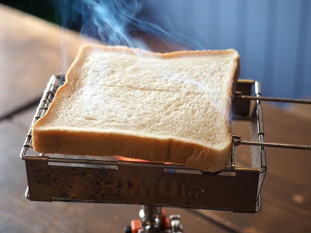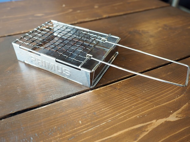 今回用意したのはプリムスのトースターだけどユニフレームやコフランなどからも出ているので好きなものを使ってください(もちろん、トーストしないでそのままでも充分おいしいです)。