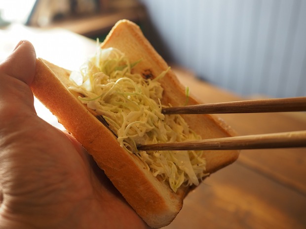さて、気になるお味ですが、食べたことのない人は信じられないかもしれないが、サバとパンの相性は想像以上にいい。サバの脂がパンと合うんだろうなぁ。もちろんもっと具沢山にしたいなら千切りキャベツじゃなくてほかのサラダにしてもいい。