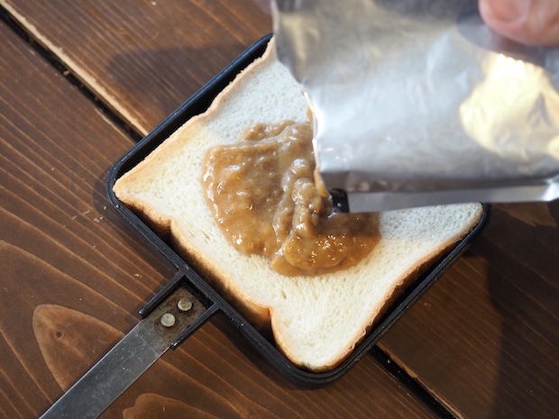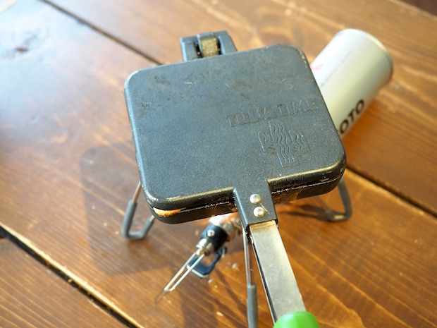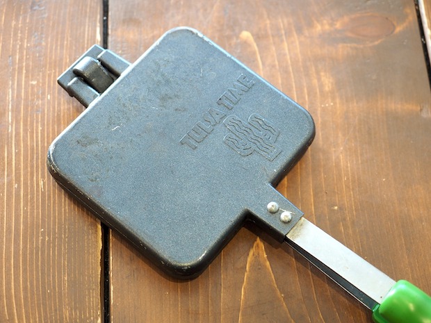 まぁ、基本の通りにホットサンド作るんだけど、じつはホットサンドじゃなく肉挟んで焼いてもいいし、なかなか使える。クッカーより重いけどホットサンド作るだけならほとんど汚れないしね。