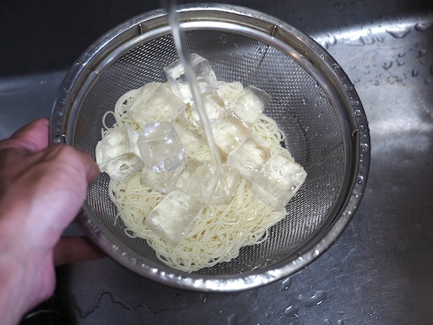 しっかりと冷やします。そしてしっかりと水を切ります。