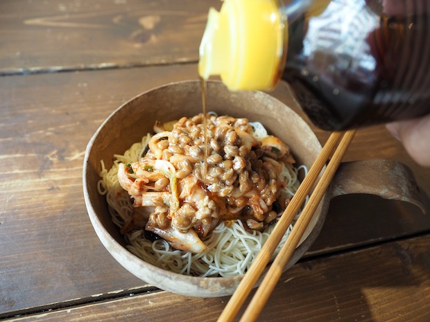 完成したそうめんにタラっと回しかけたら完成です。