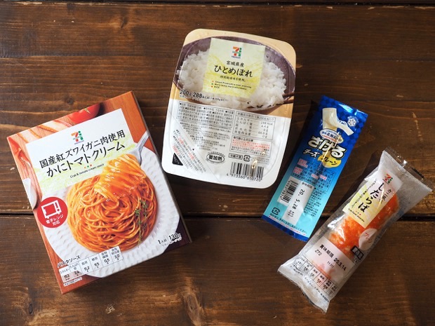 今まで使おう使おうと思って使ってなかったパスタソースを使います! 今回はかにトマトクリーム。これだけでもイイんですが寂しいのでカニカマも使います。セブンイレブンではカニカマも何種かあるので好きなものを選んでくださいね。