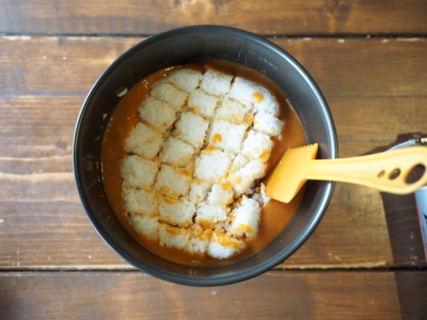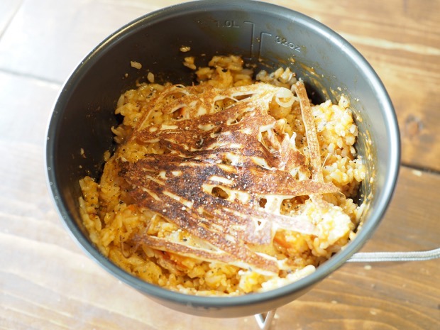 パスタソースは焦がしチーズなしでリゾットにも使えるし、先月の水漬けパスタと合わせれば普通にパスタとしてもササっとおいしく山ごはんできますよ。