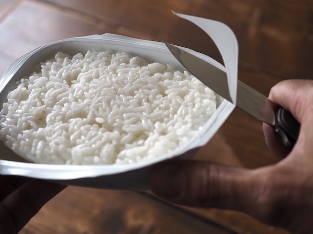 そして次はコチラ、パックご飯。通常は電子レンジで温める商品ですが……。