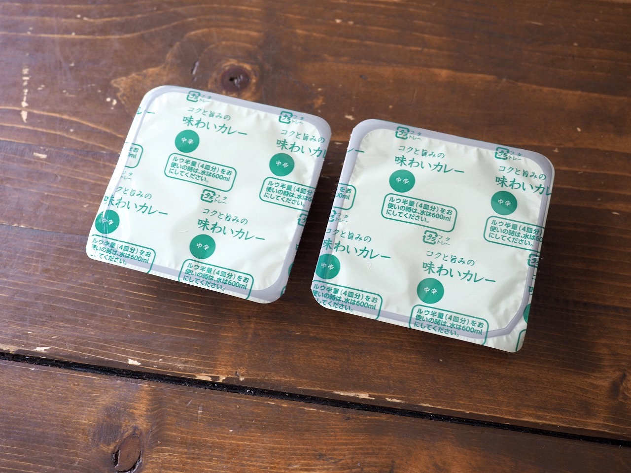 カレールーは通常1箱8人皿で、その半分4人皿分が2パックでパウチされていています。