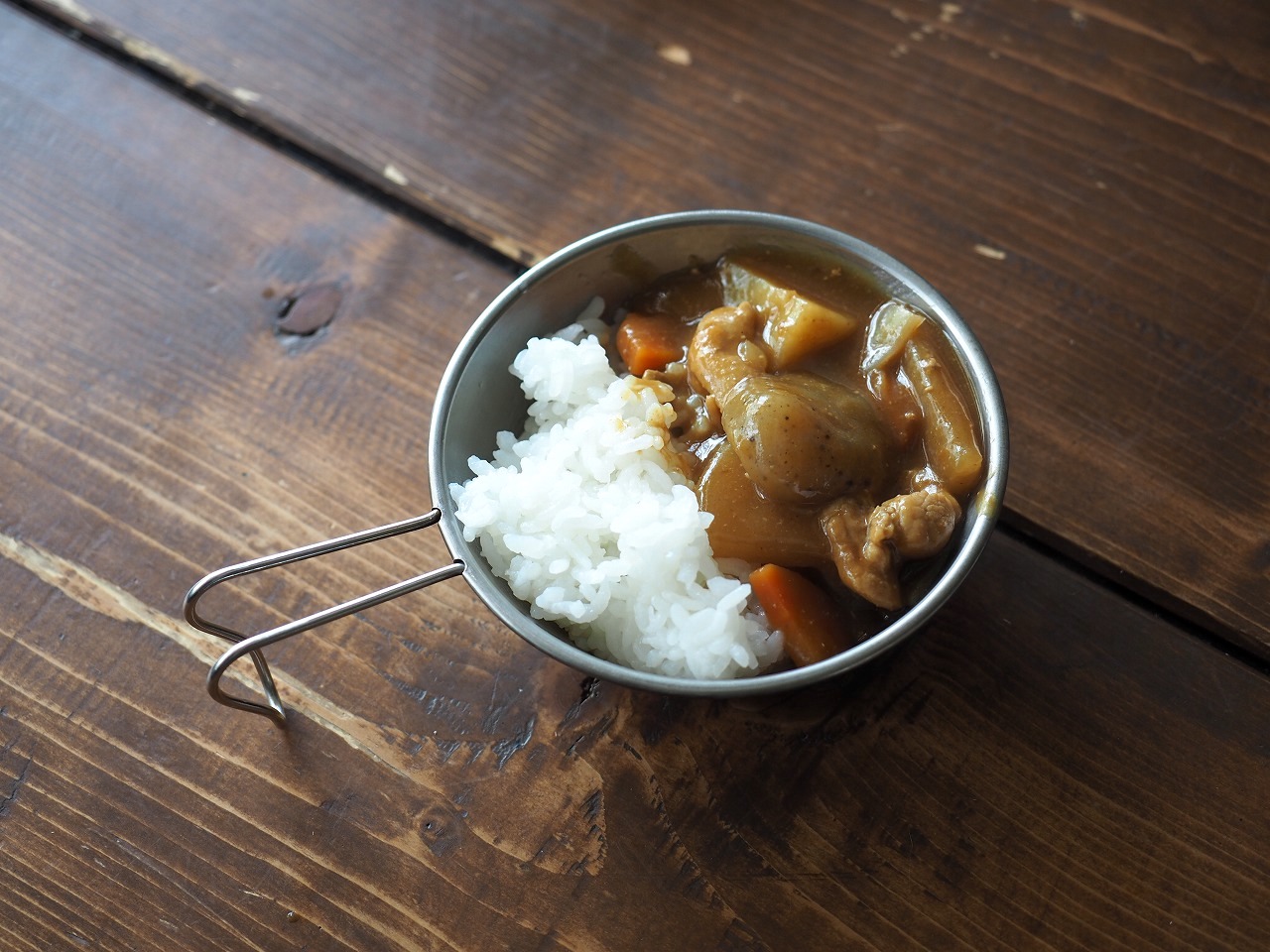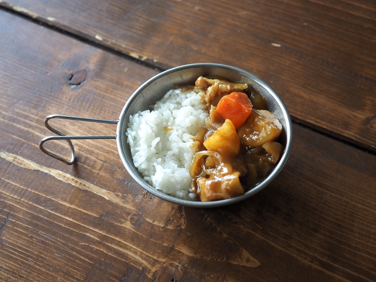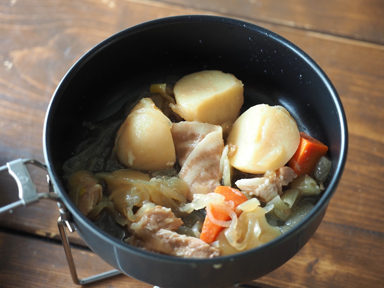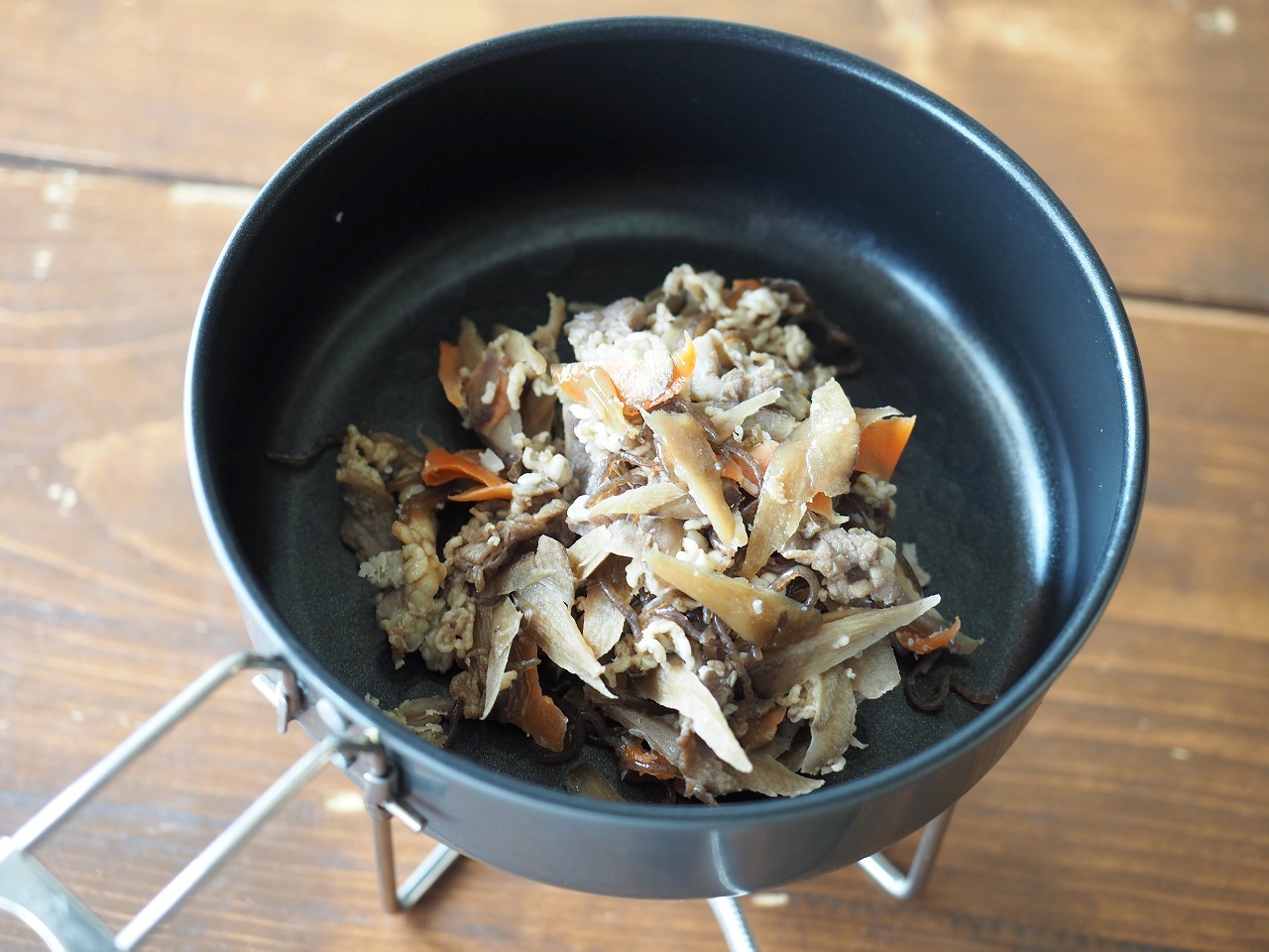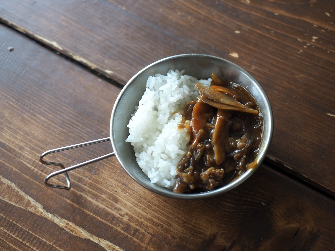 さて、3つ目は7種具材の豚汁。同じようにコッヘルに開けると……。