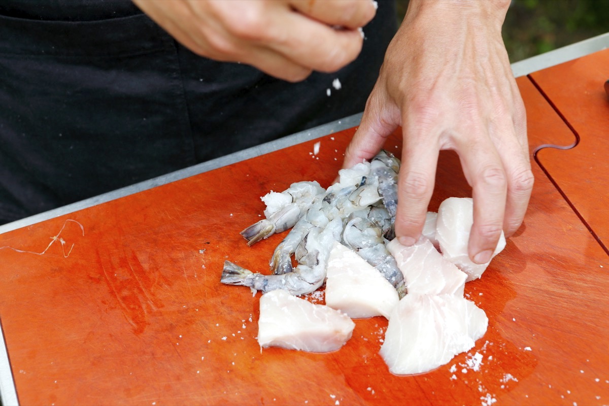 ポイントはエビとメカジキの下味の塩を忘れないこと。僕は高血圧だから控えめにしているけど(涙)、強めに塩を振って味を締めるとおいしくできます。