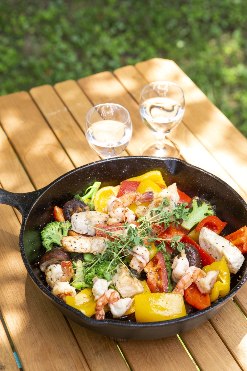 【おうちスキレット】雨続きだからこそ食卓を華やかに! 日本酒の旨味まとう「魚介と夏野菜のソテー」