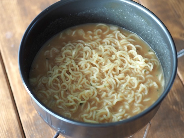 沸かしたら麺を茹でるのは普通のインスタントラーメンと同じです。