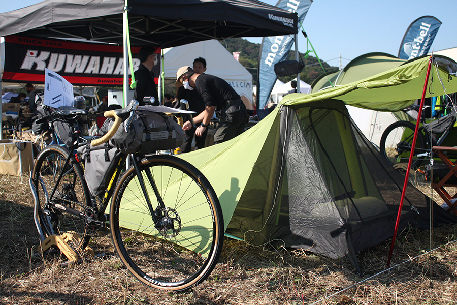 BIKE & CAMPは、自転車とキャンプをテーマにした「旅フェスティバル」。自転車旅にまつわる自転車本体、パーツ、バッグ、テントやキャンプギアなどが展示・販売され、ワークショップやトークショーなども開催されるということでバイカーはもちろん、キャンパーにも人気のイベント。2017年から2019年まで三重県いなべ市にある青川峡キャンピングパークで開催され、2019年11月には会場を茨城県かすみがうら市に移し、そして本年2020年は茨城県つくば市での開催となったそうです。