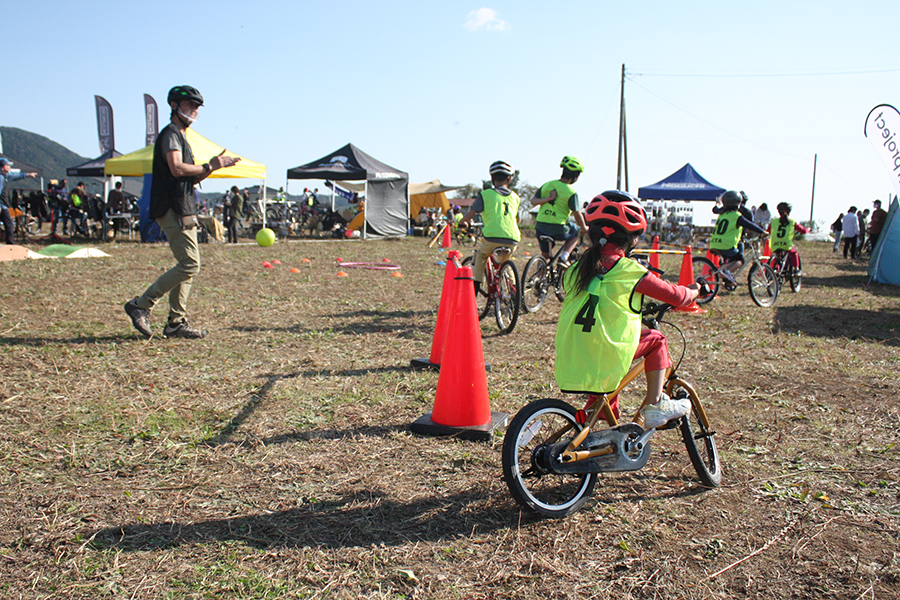 また昨今話題のeバイクの試乗会や、子どもを対象としたグラベルライド体験会も開催されていました。足をつかずにどれだけ乗っていられるかを競う遅漕ぎ大会など、見ていてほのぼのしました。