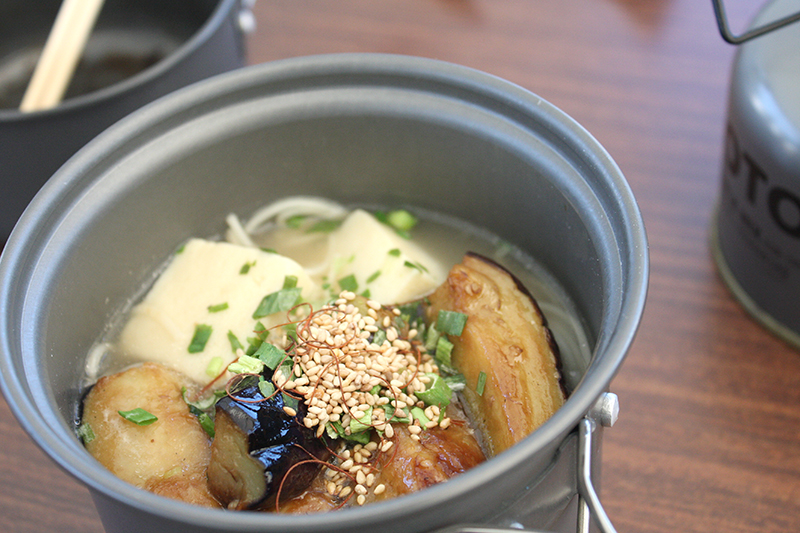 小雀さんのワークショップはワンバーナークッキング。今回作ったのは「とろとろ茄子うどん」