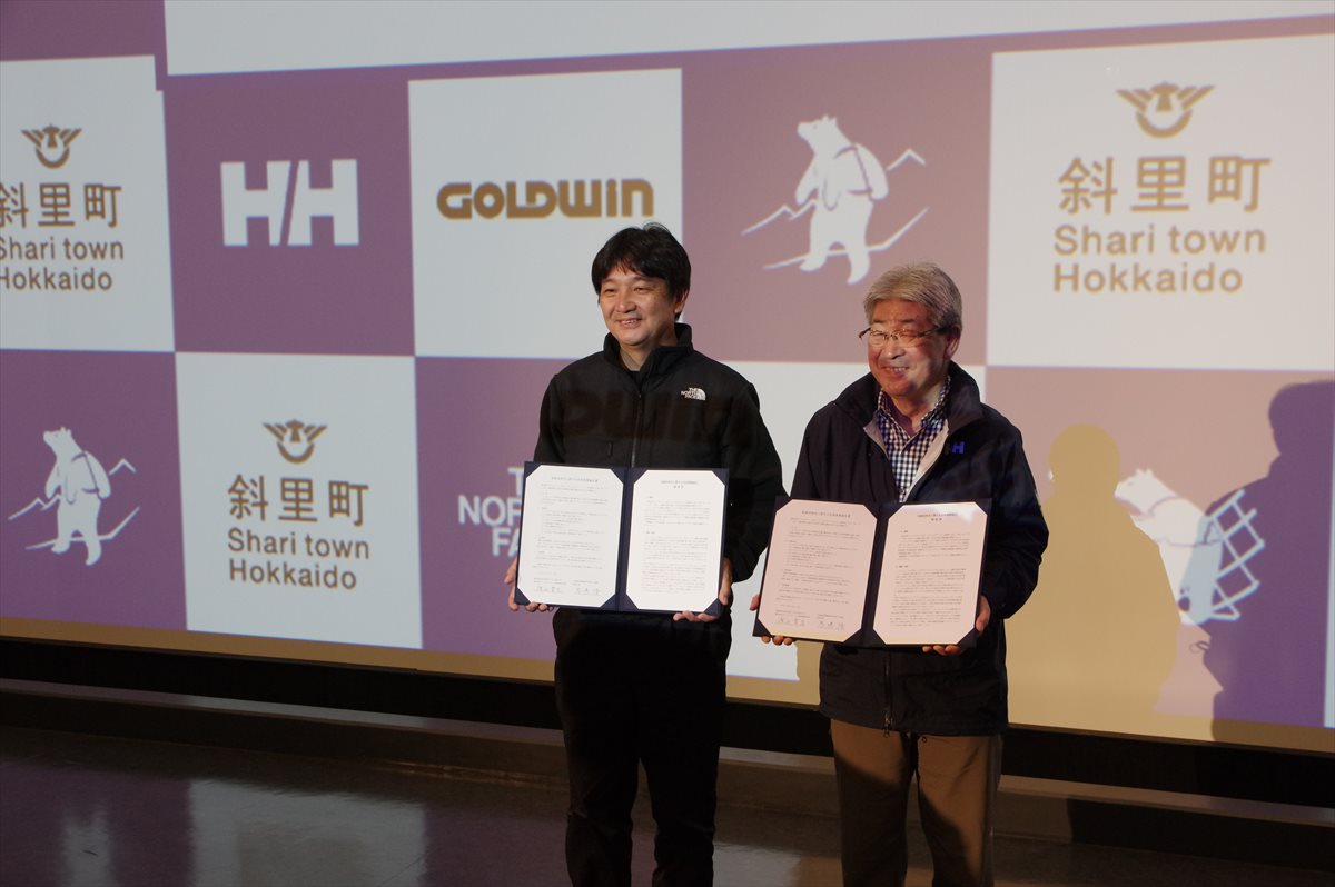さる10月9日、(株)ゴールドウイン(以下GW)と北海道斜里町の間で地域活性化に関する包括連携協定が締結された。ザ・ノース・フェイス(TNF)やヘリーハンセン(HH)などのアウトドアブランドを展開する同社と、国立公園であり世界自然遺産でもある知床を擁する同町は、今後、知床国立公園の魅力向上、子どもたちの自然体験の充実、自然と共生するサスティナビリティ社会の実現などを目的に、お互いのノウハウを活かしながら地域活性化に取り組んでゆくという。