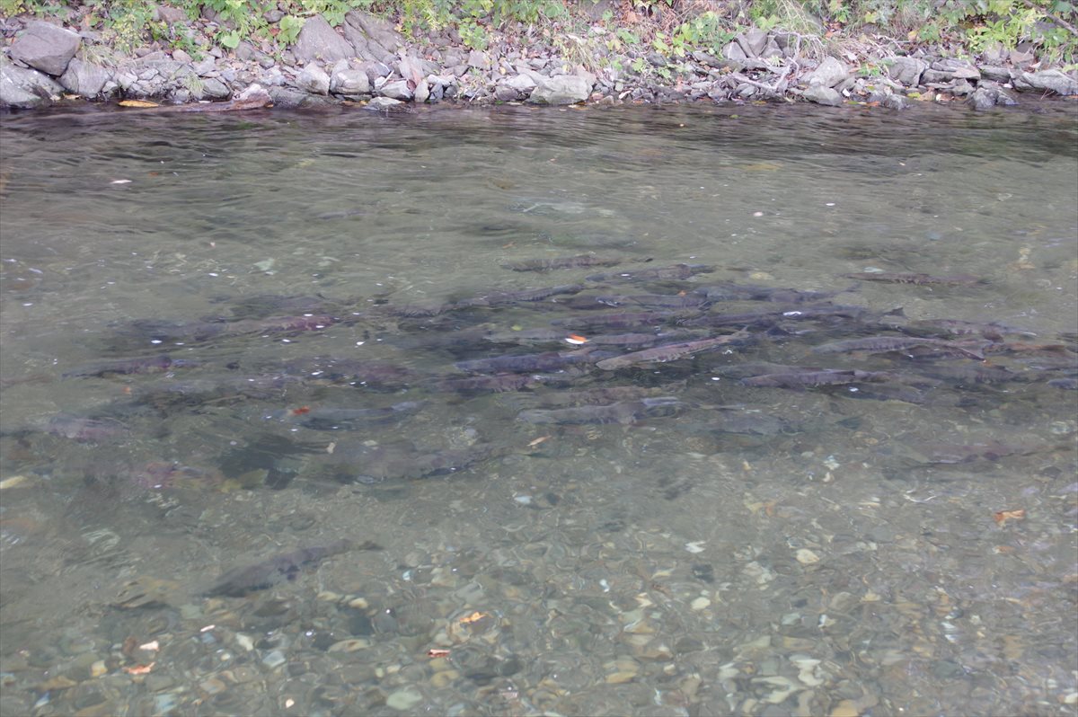秋にはいたるところで鮭の遡上が見られる