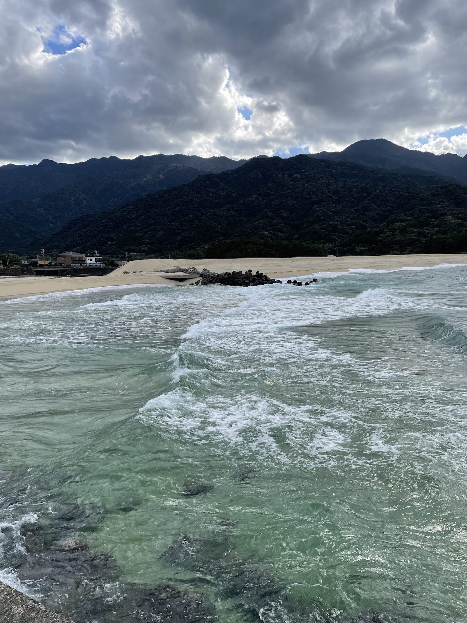 一湊を出て、その西ふたつ目の集落である永田に向かった。屋久島には1800mを超える山が8座ある。みな、島の中央部に聳えていて他の沿岸部からはどの山の頂上も見えないが、永田だけは別だった。集落はもとより海岸からも屋久島第2位の高峰である永田岳(1889m)の山頂まで一望できる。しかし、雨雲に覆われて見えなかった。集落にはたった1軒だけ冬場営業をしている民宿があった。そこが今回の逗留場所であったが、まだ時間が早かった。