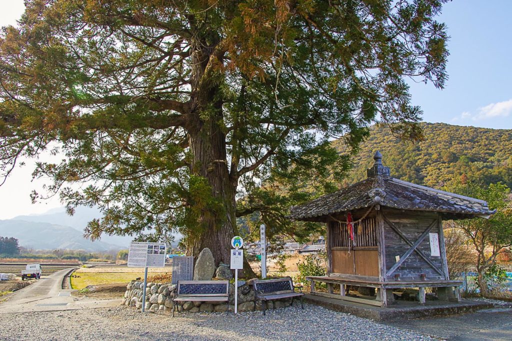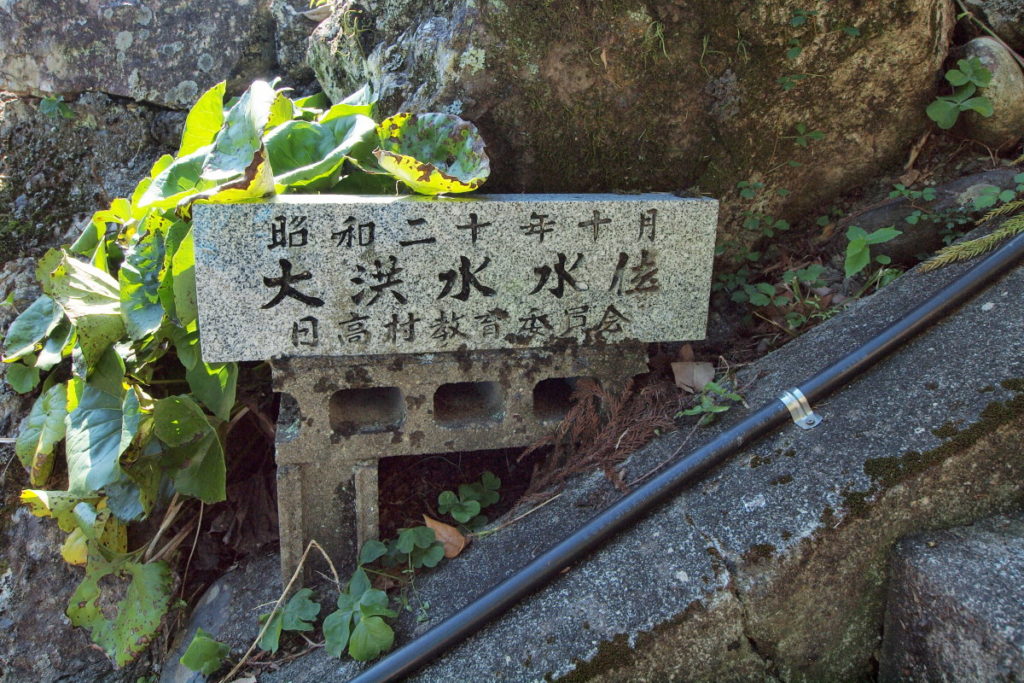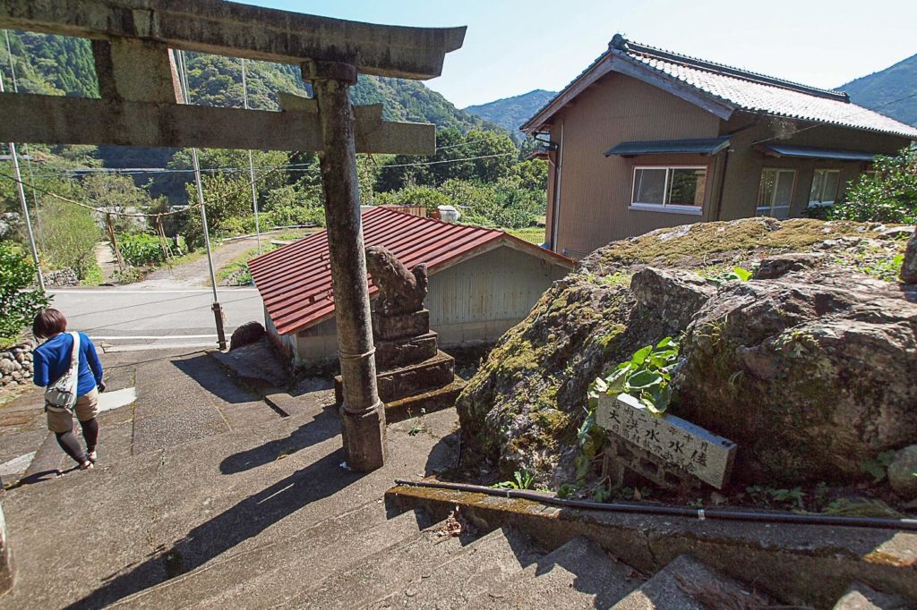暴れる仁淀川の記憶を記す日吉神社(高知県日高村の長畑集落)。仁淀川本流の川面から少なくとも20m上にある。自然の荒ぶりに驚愕。